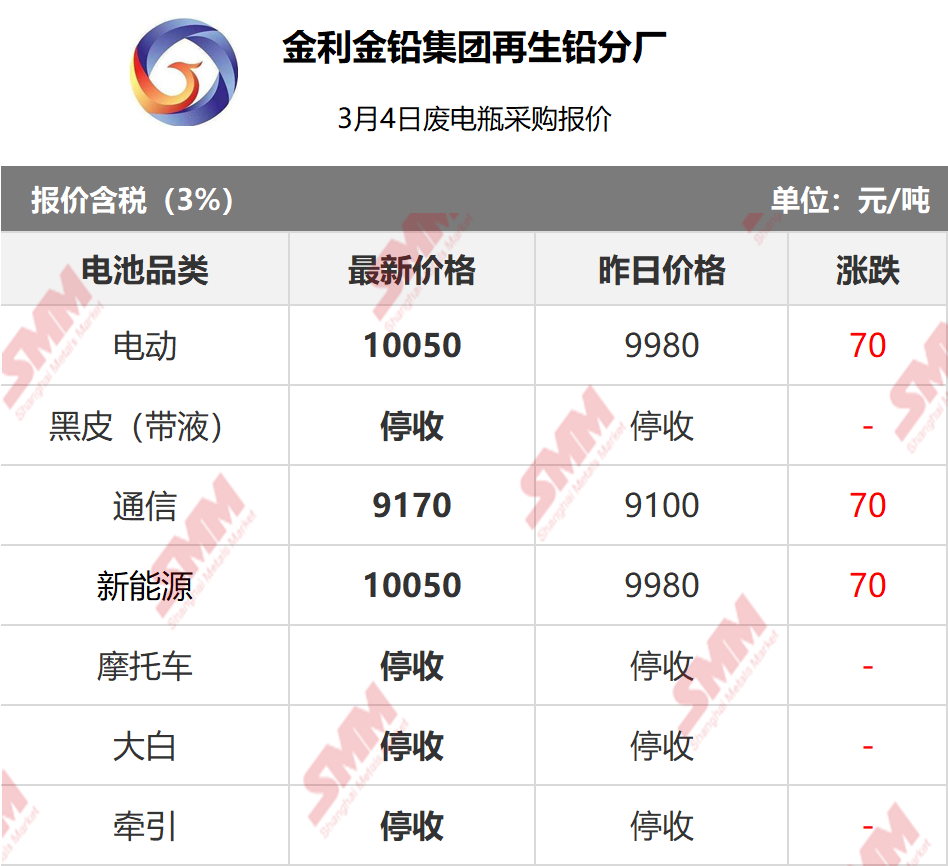 3月4日金利再生 废电瓶采购报价