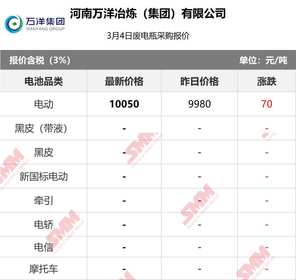3月4日万洋鸿达 废电瓶采购报价