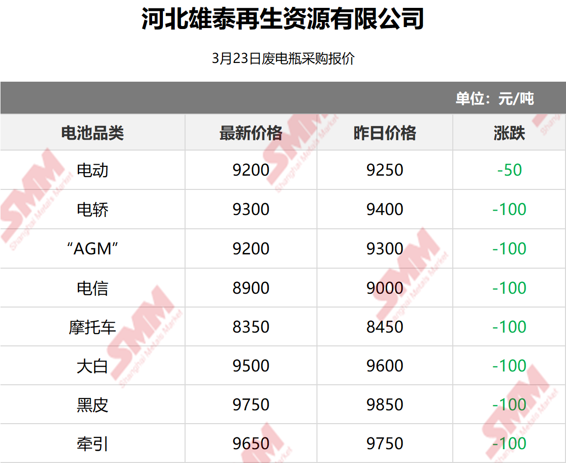 3月23日河北雄泰 废电瓶采购报价