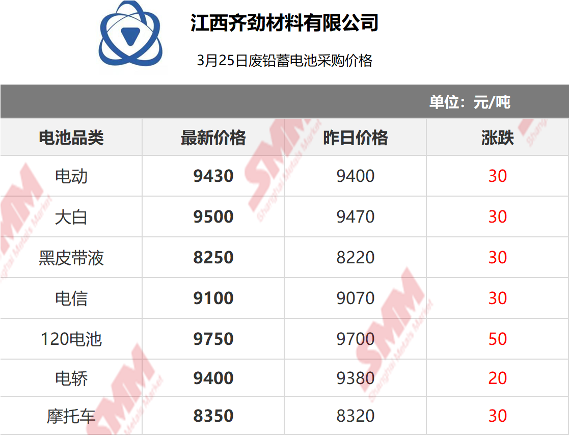 3月25日江西齐劲 废电瓶采购报价