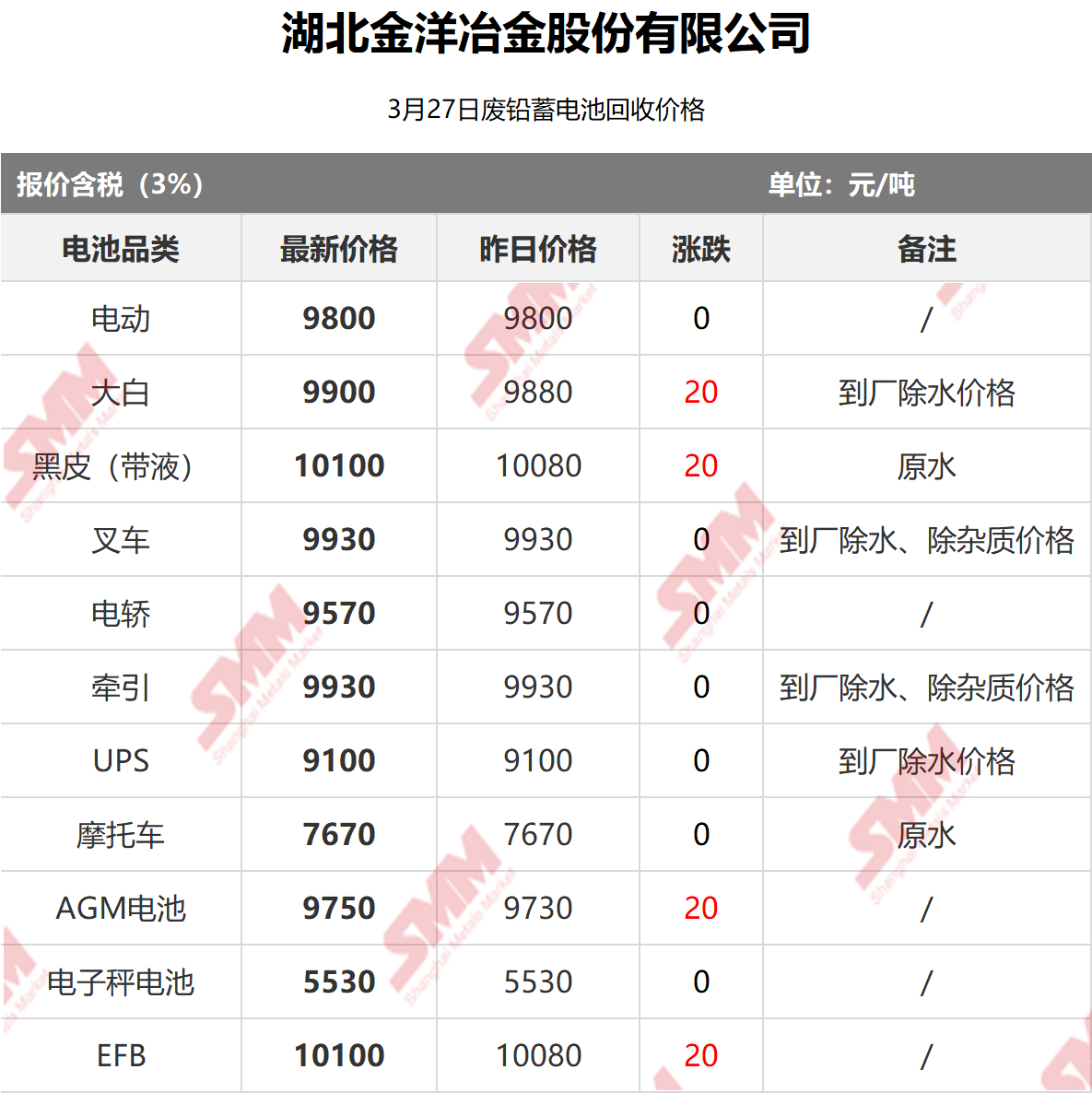 SMM 2026/3/27 国内知名再生铅企业废电瓶采购报价