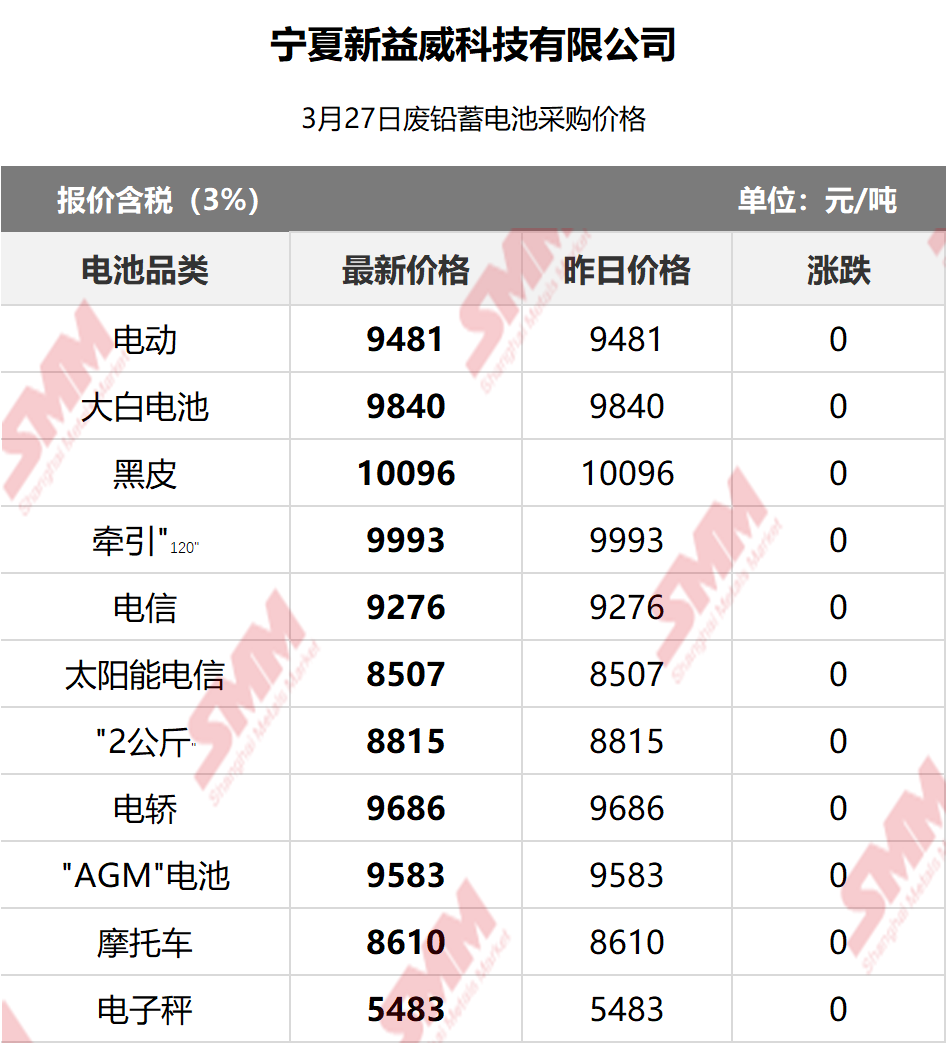 3月27日宁夏新益威 废电瓶采购报价
