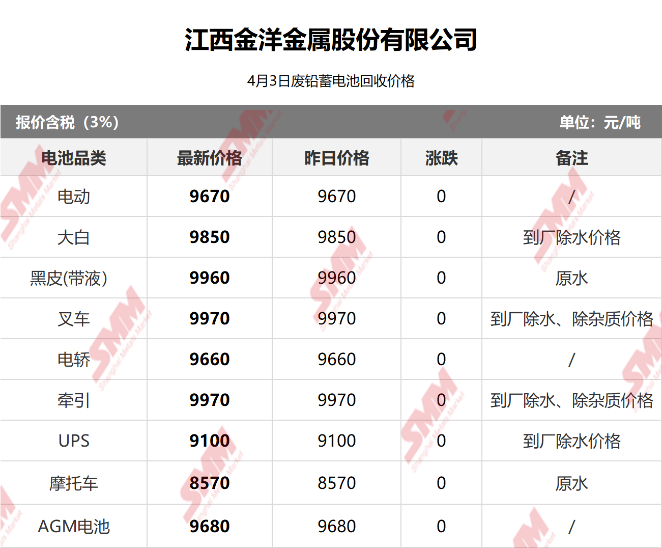 4月3日江西金洋 废电瓶采购报价