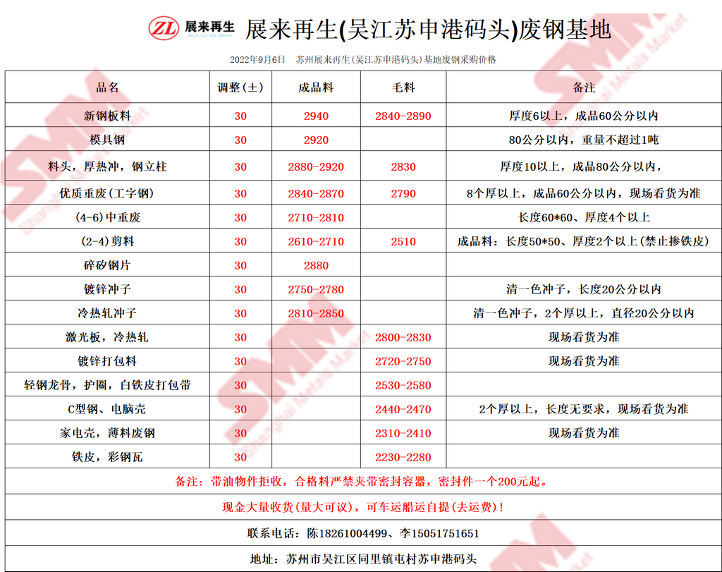 今日 苏州展来再生(吴江苏申港码头)基地 废钢采购报价已更新,有货的朋友欢迎联系我们!