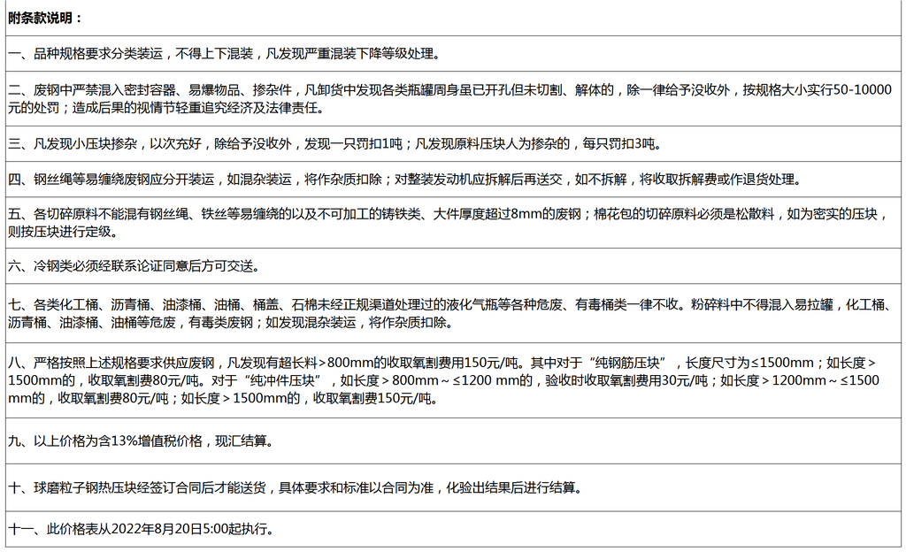 2月13日秦邮特钢 废钢收购报价