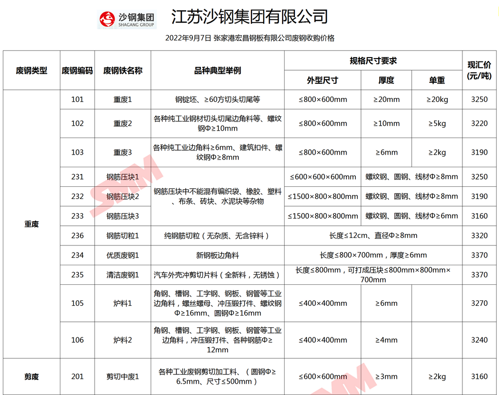 今日沙钢张家港基地 废钢收购报价已更新,有货的朋友欢迎联系我们!