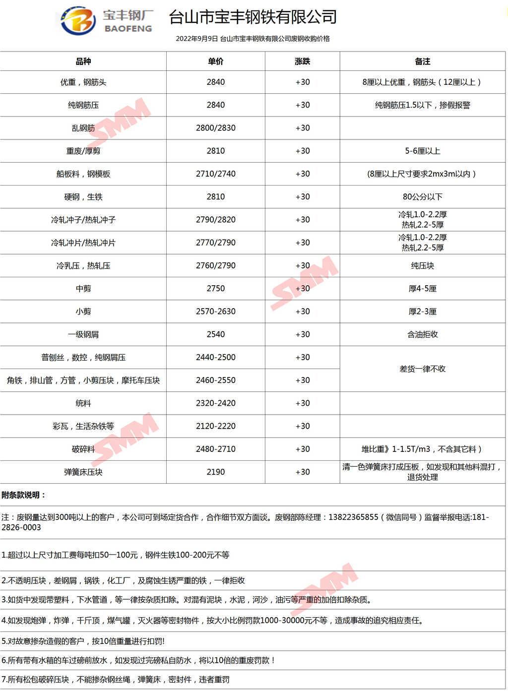 今日宝丰钢铁 废钢收购报价已更新,有货的朋友欢迎联系我们!