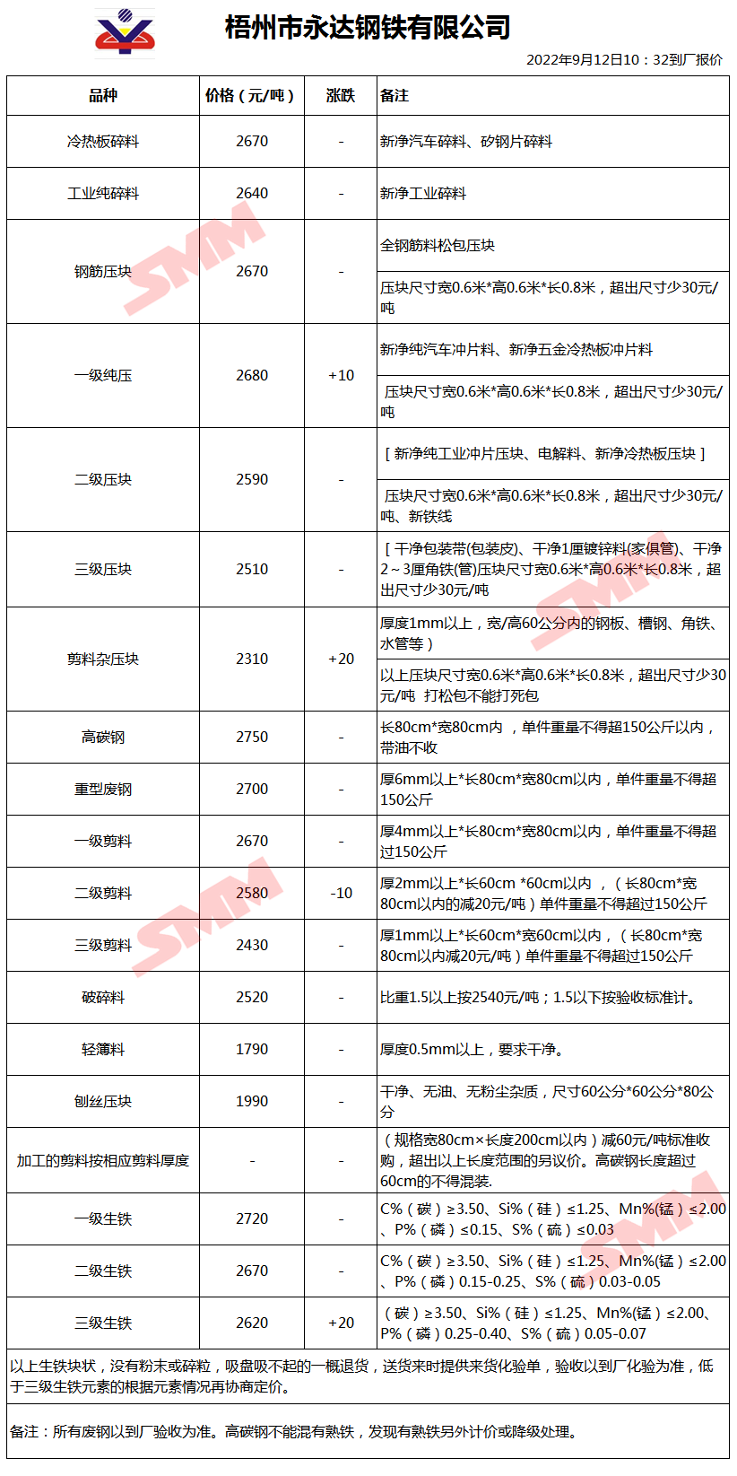 今日梧州永达钢铁 废钢收购报价已更新,有货的朋友欢迎联系我们!