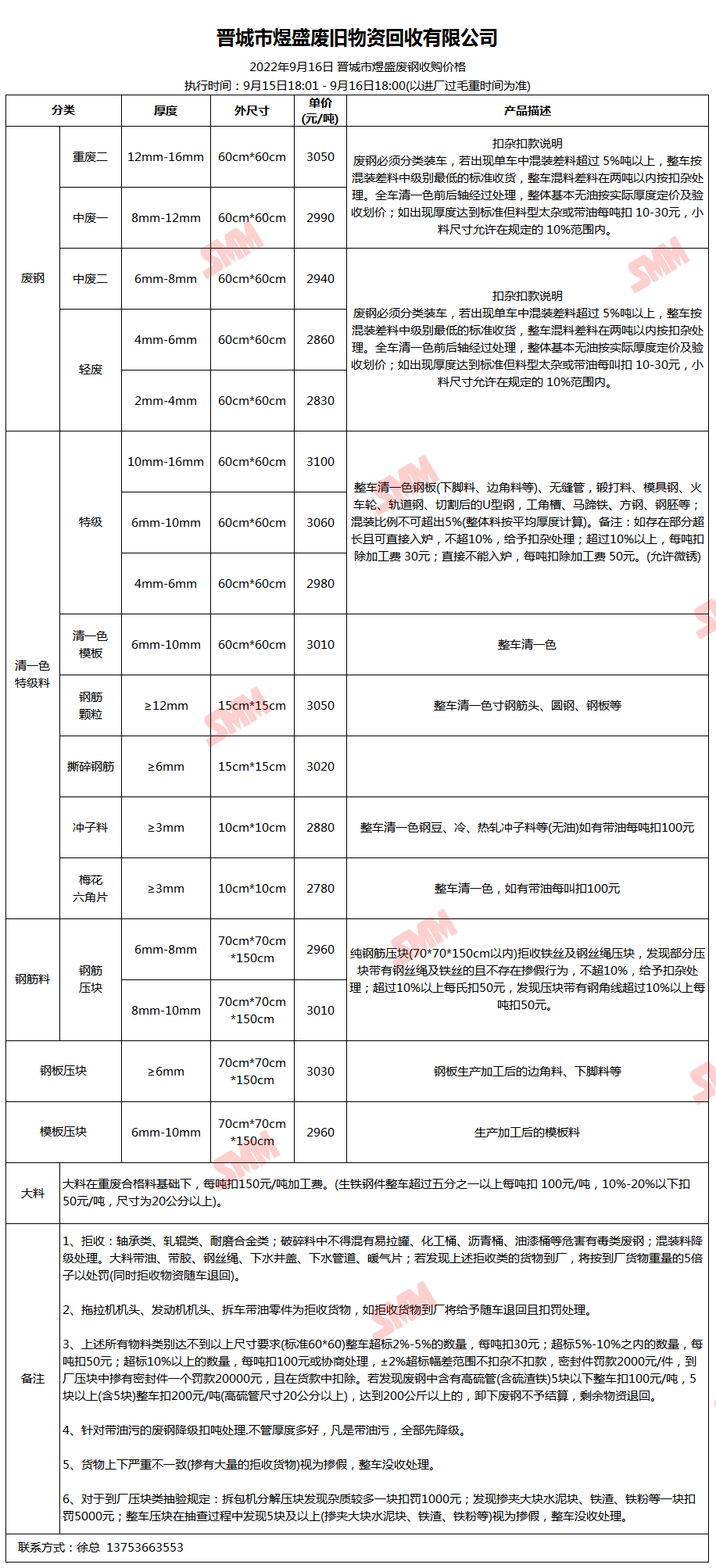 今日晋城市煜盛 废钢收购报价已更新,有货的朋友欢迎联系我们!