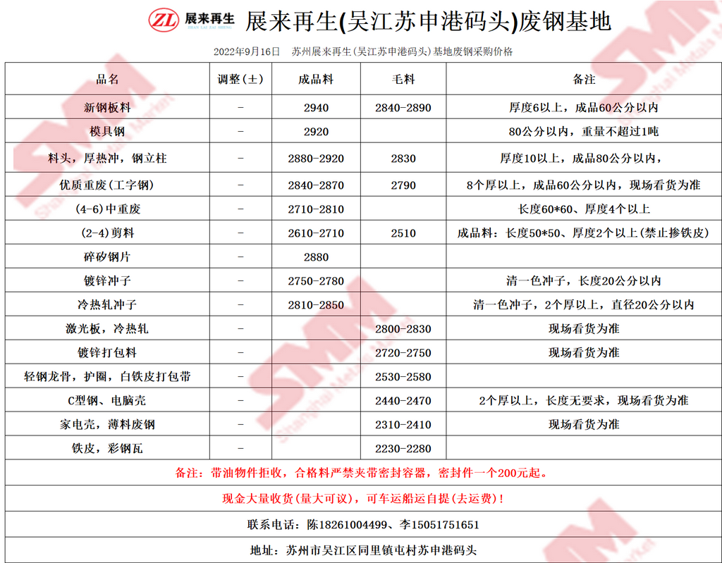 今日 苏州展来再生(吴江苏申港码头)基地 废钢采购报价已更新,有货的朋友欢迎联系我们!
