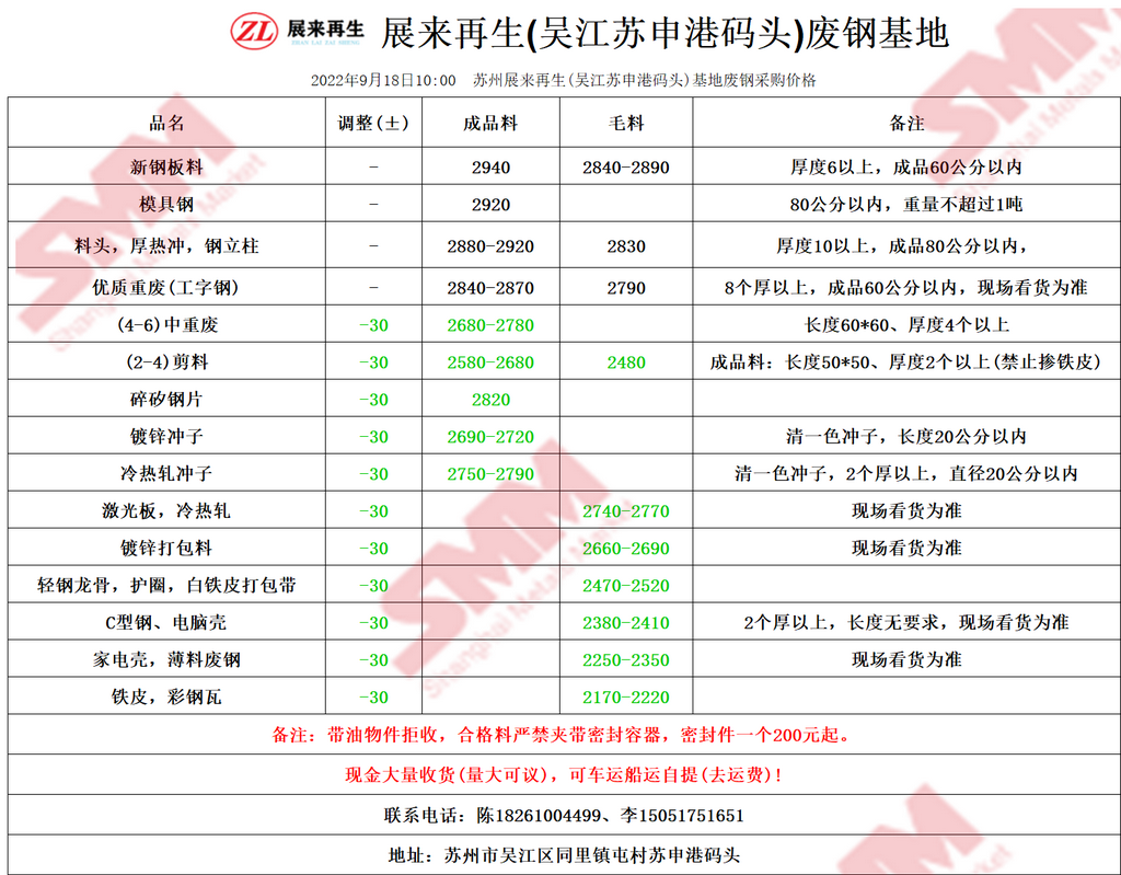 今日 苏州展来再生(吴江苏申港码头)基地 废钢采购报价已更新,有货的朋友欢迎联系我们!