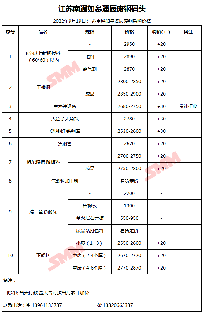 9月19日南通如皋遥辰 废钢采购报价