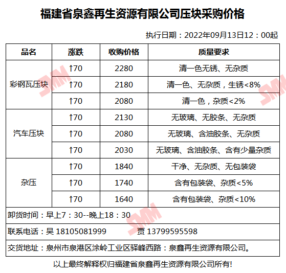 再生金属企业报价合作需求,欢迎联系:13585952056 王