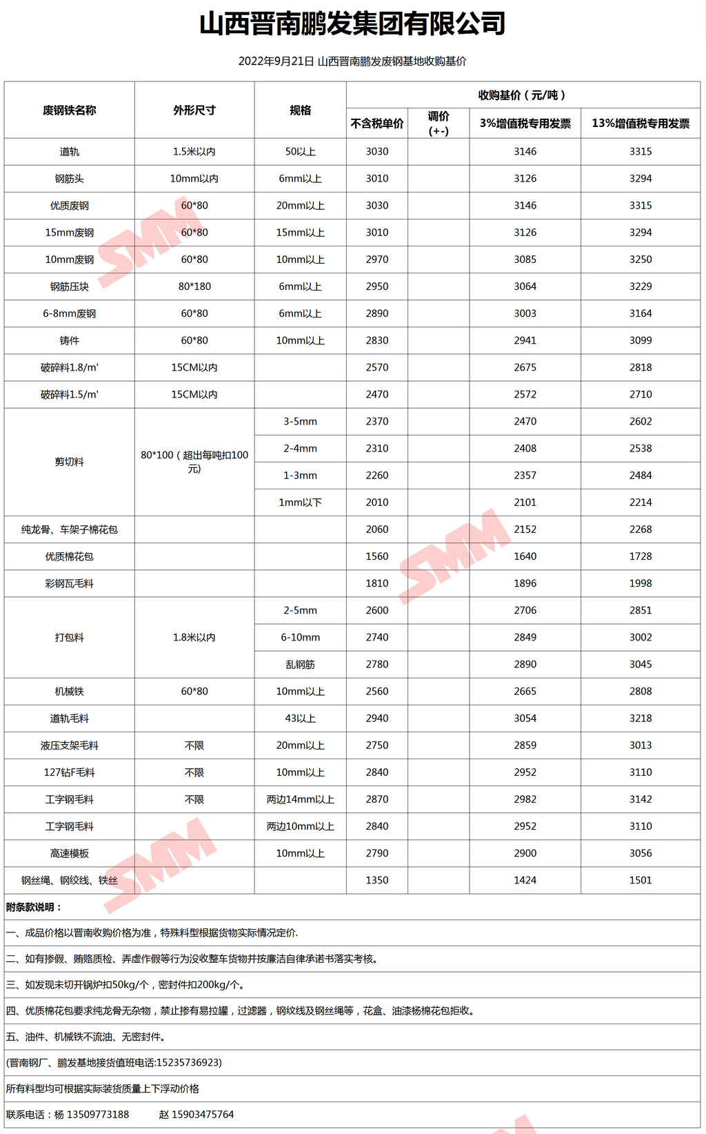 9月21日晋南鹏发 废钢收购报价
