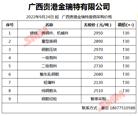 今日 广西贵港金瑞特 废钢采购报价已更新,有货的朋友欢迎联系我们!