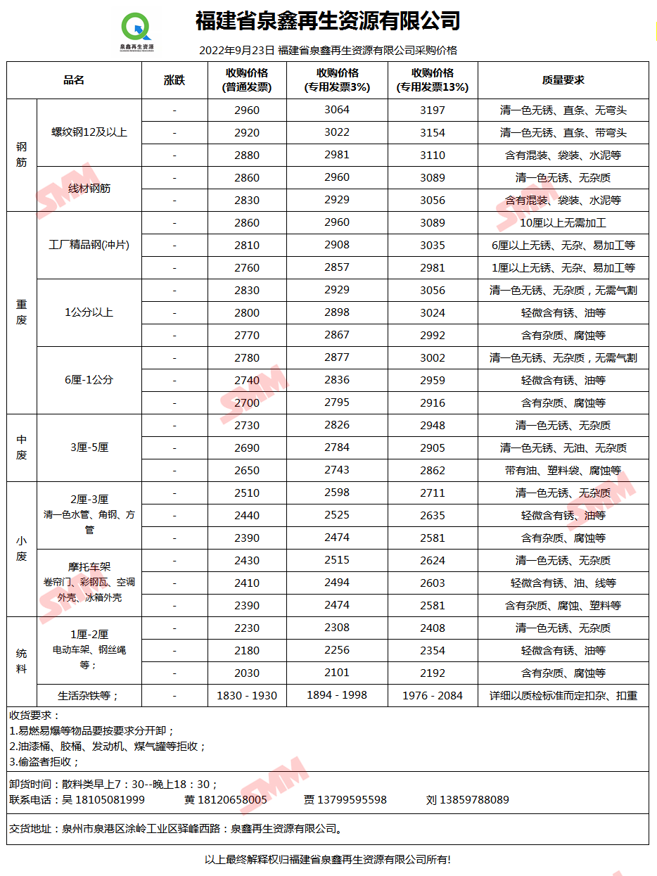 今日 福建泉鑫再生 废钢采购报价已更新,有货的朋友欢迎联系我们!
