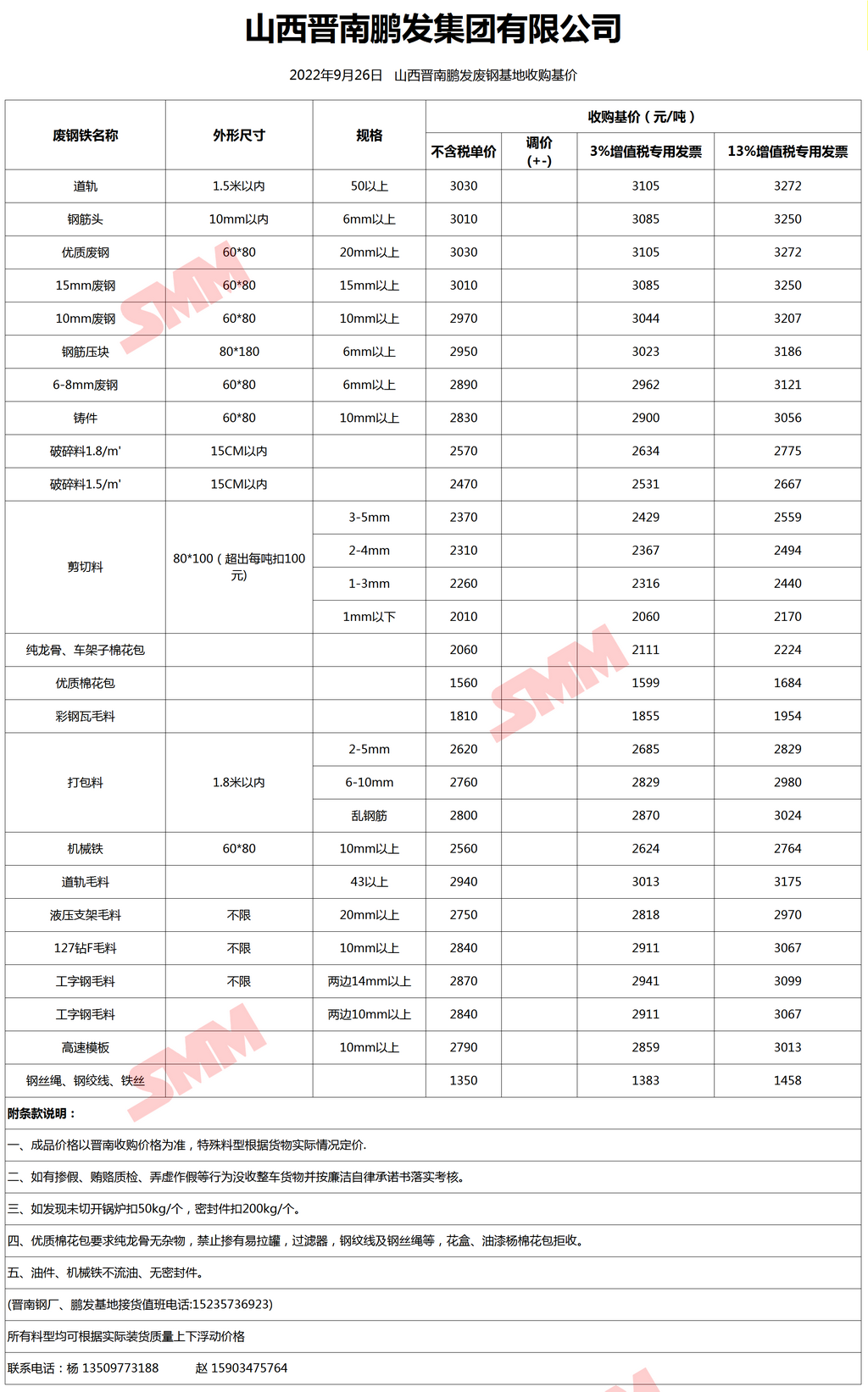 9月26日晋南鹏发 废钢收购报价