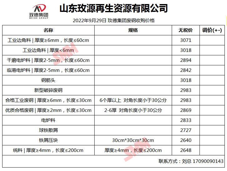 今日山东玫源再生 废钢收购报价已更新,有货的朋友欢迎联系我们!