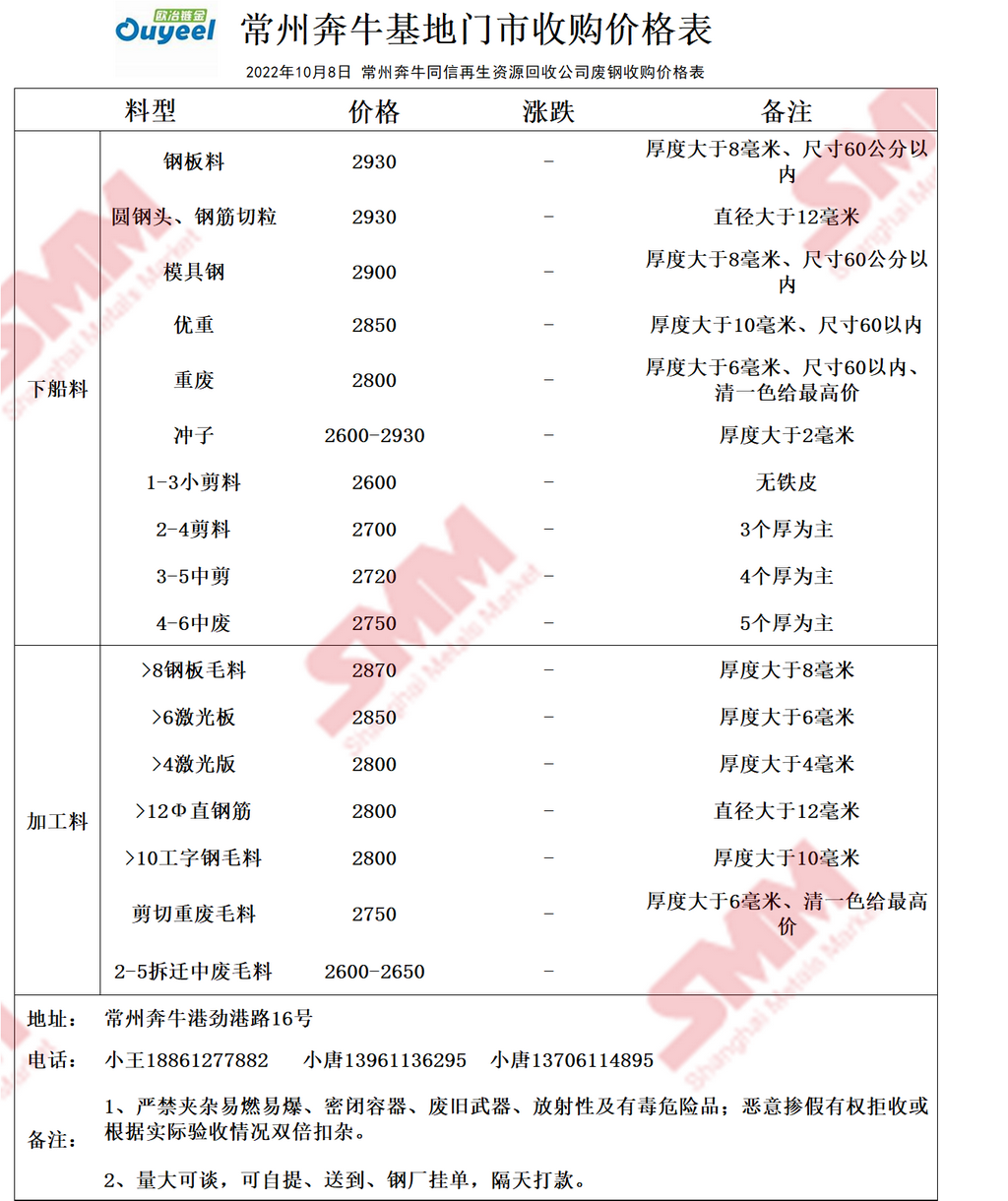 10月8日常州奔牛基地 废钢收购报价