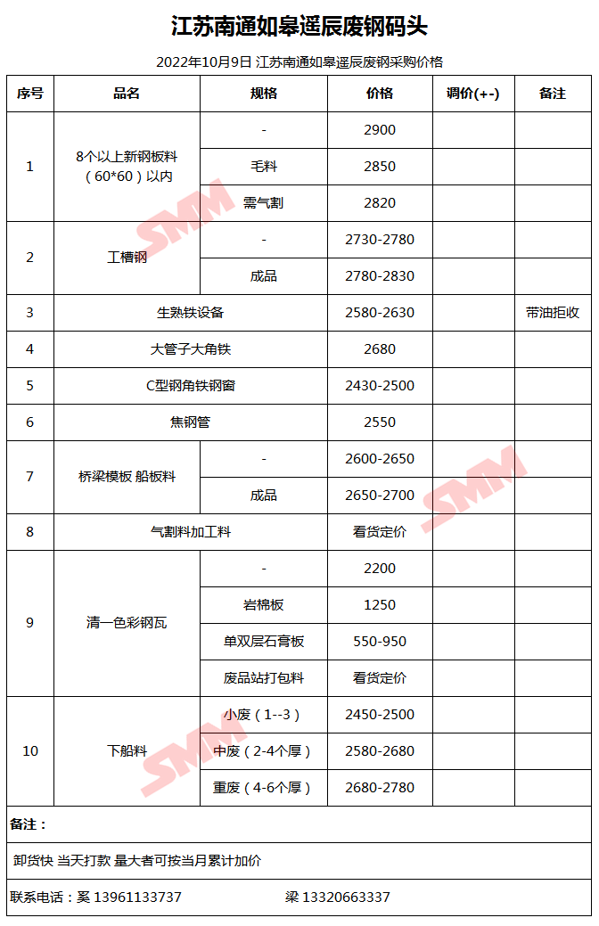 10月9日南通如皋遥辰 废钢采购报价