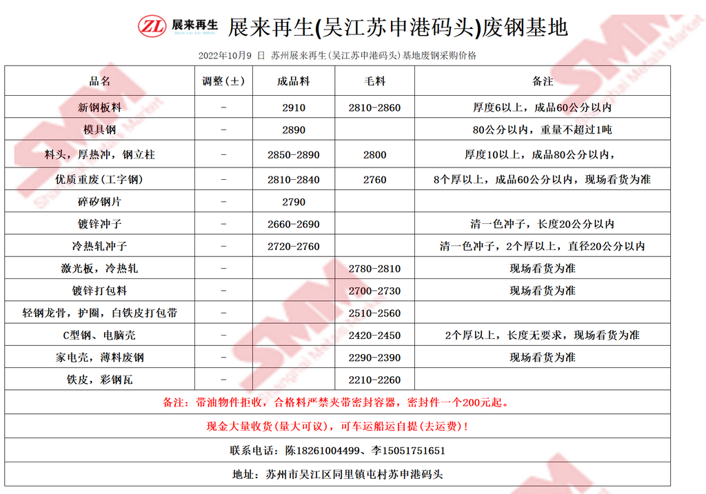 10月9日展来再生基地 废钢采购报价