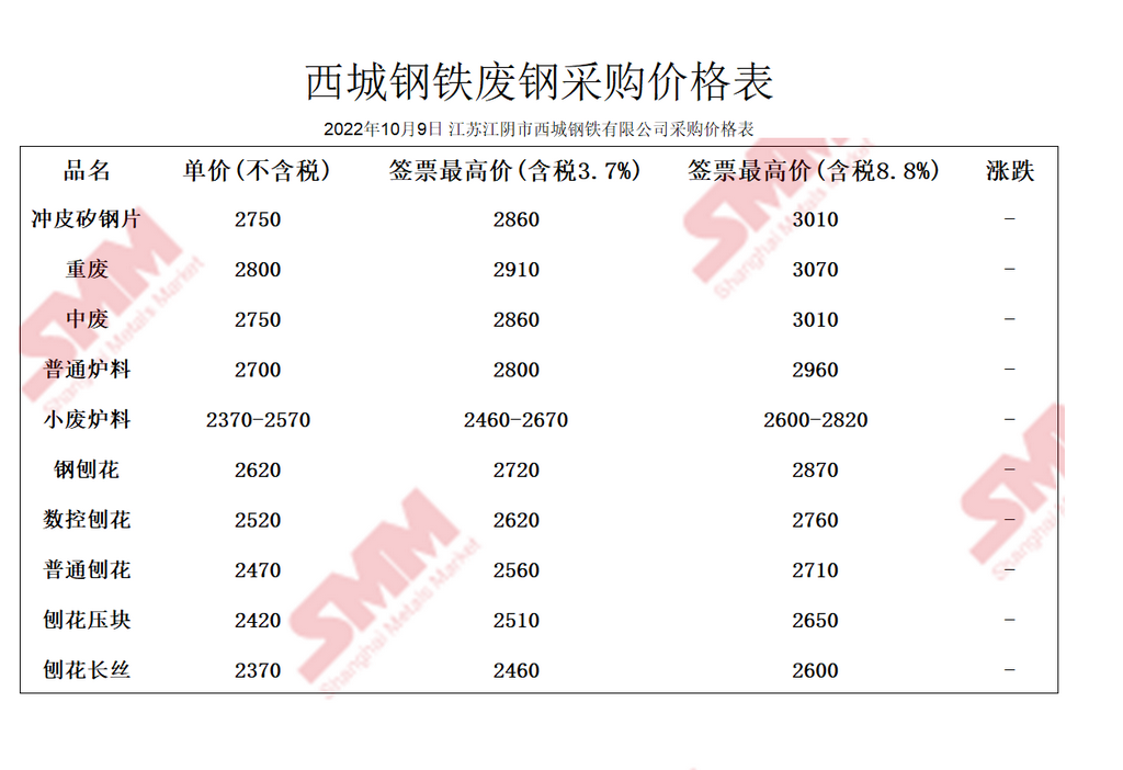 10月9日西城钢铁 废钢采购报价