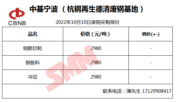 10月10日中基宁波 (杭钢再生德清废钢基地) 废钢采购报价