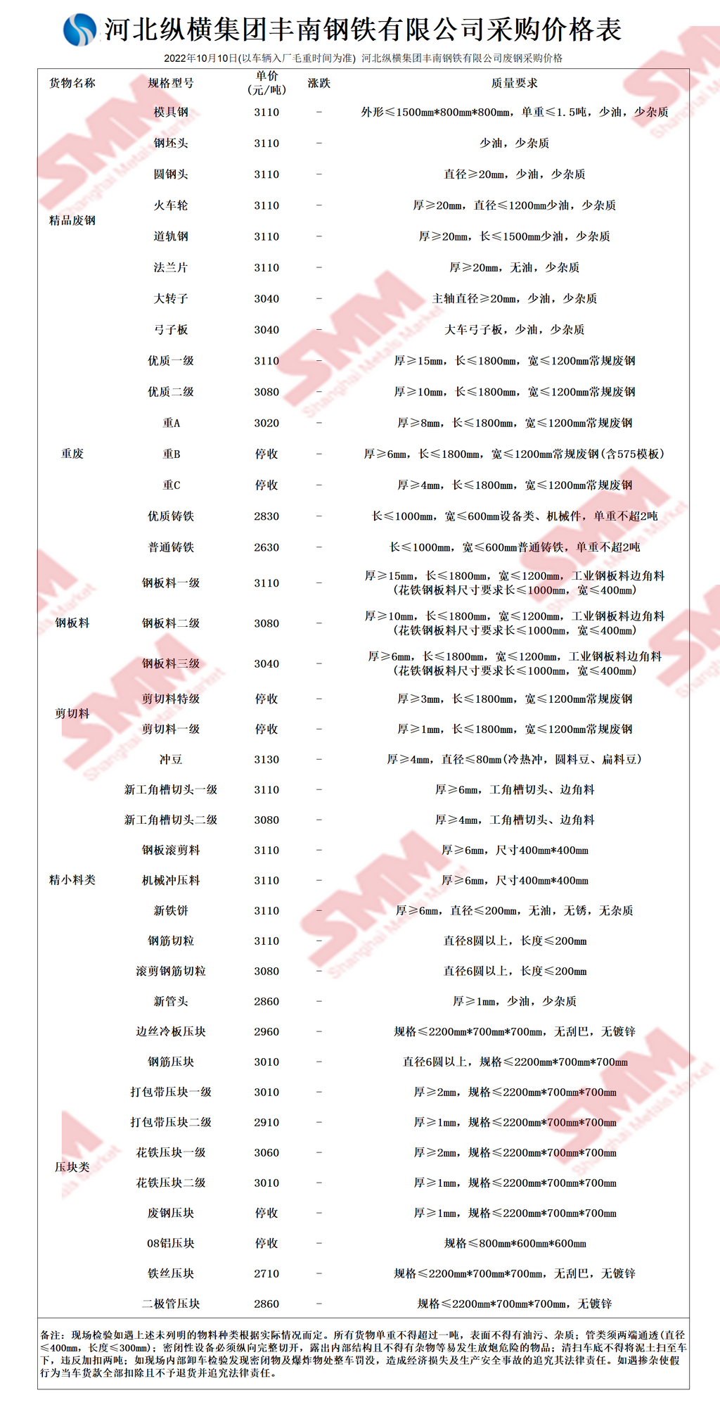 10月10日河北纵横集团丰南钢铁 废钢采购报价