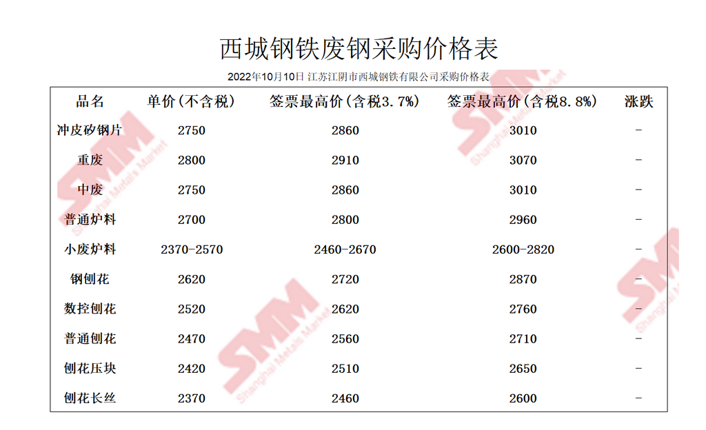 10月10日西城钢铁 废钢采购报价