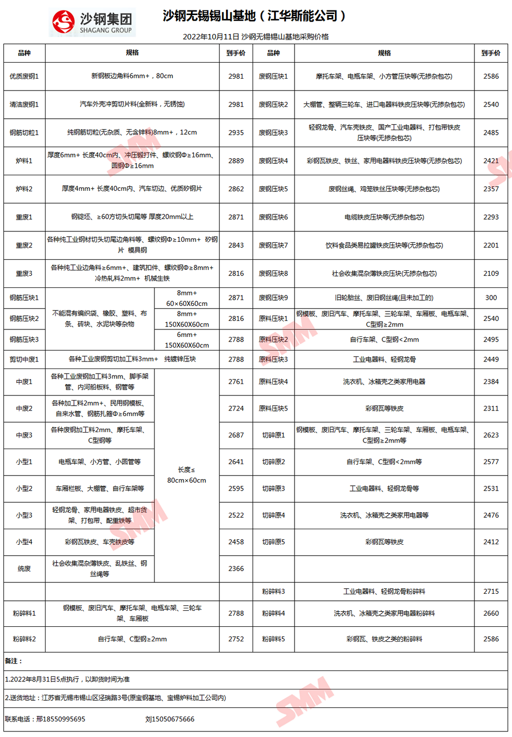 今日沙钢锡山基地 废钢采购报价已更新,有货的朋友欢迎联系我们!