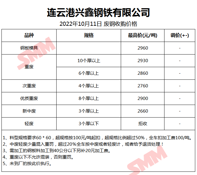 10月11日连云港兴鑫钢铁 废钢收购报价