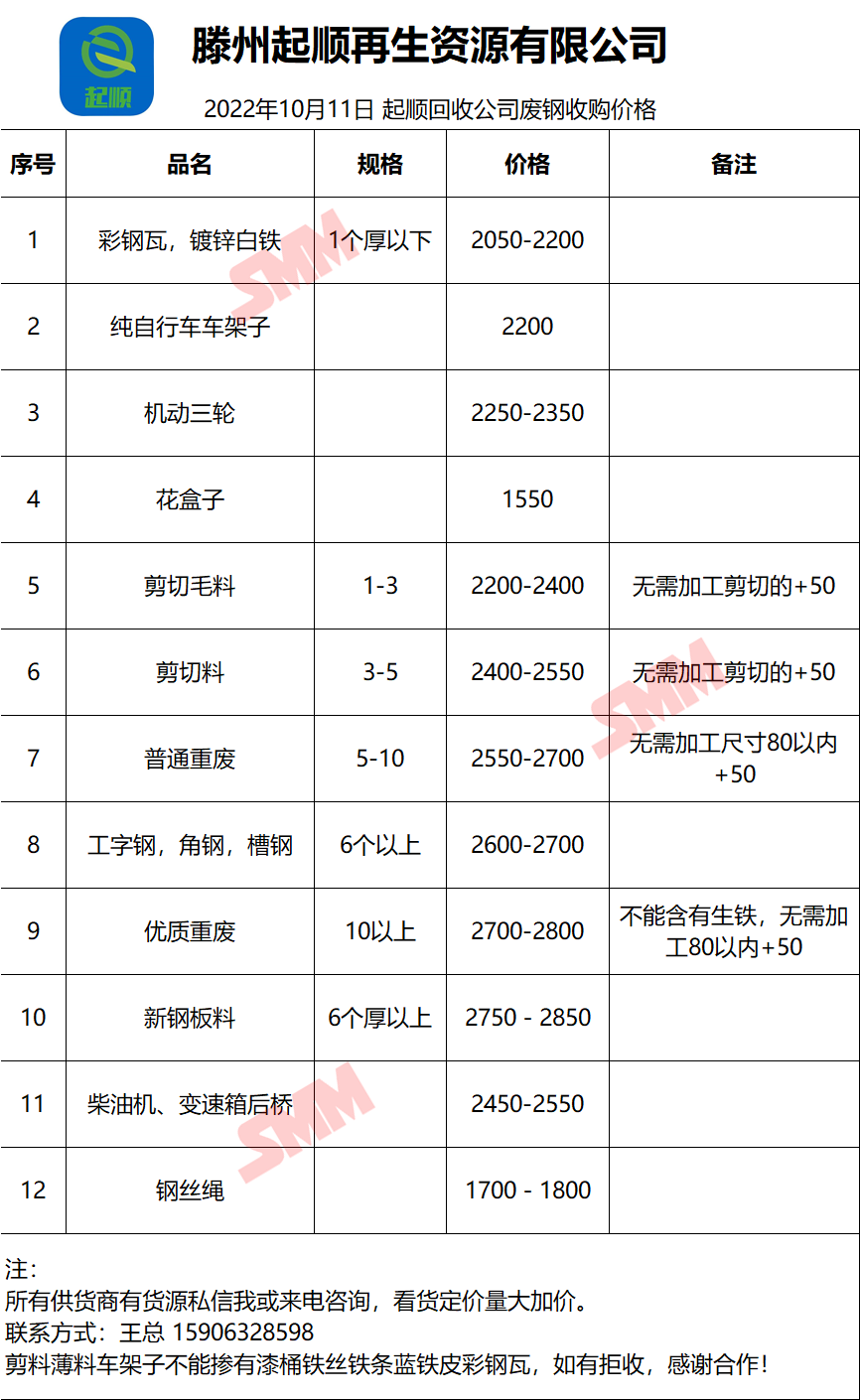 今日滕州起顺再生 废钢收购报价已更新,有货的朋友欢迎联系我们!