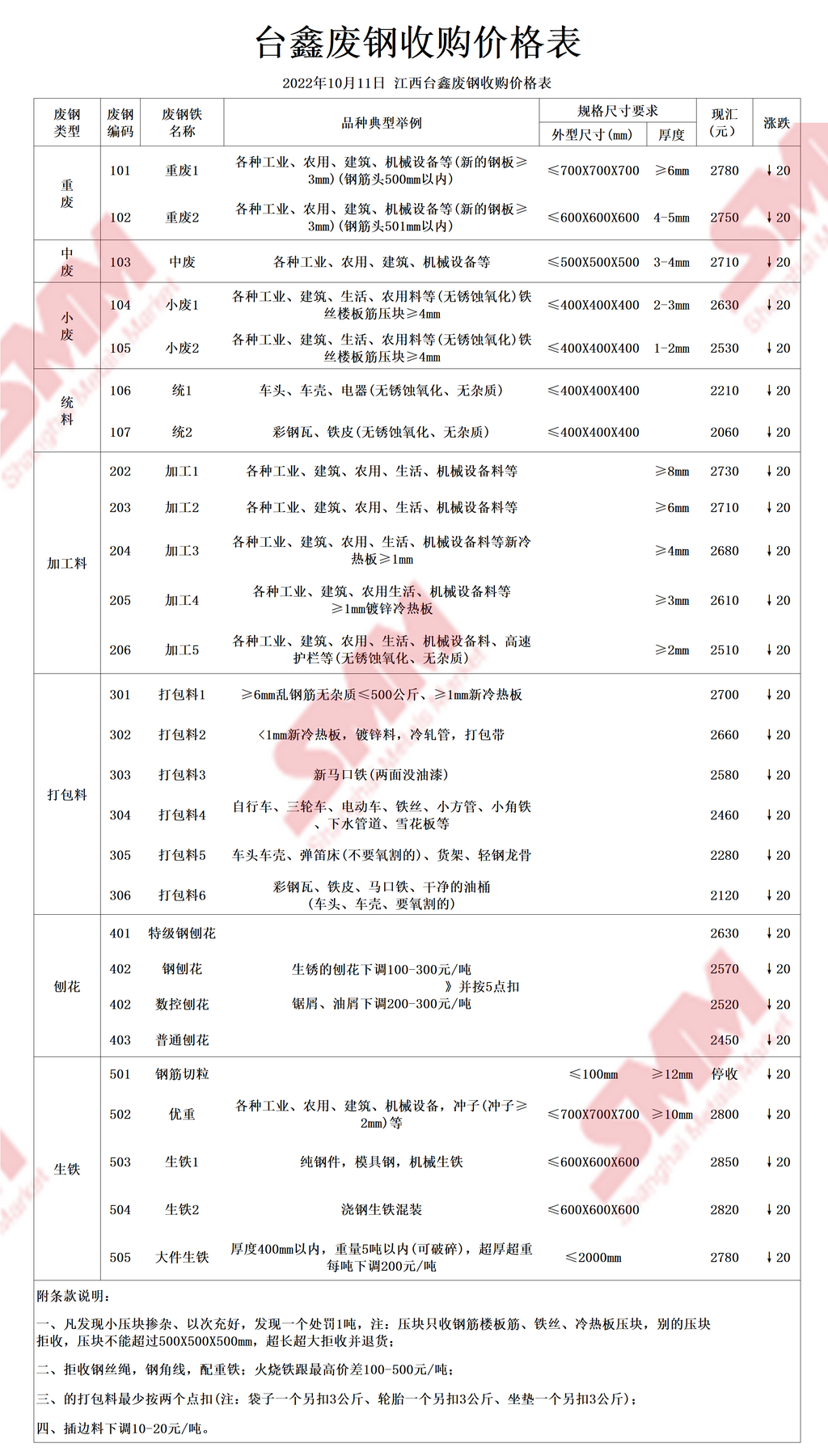 10月11日台鑫钢铁 废钢收购报价