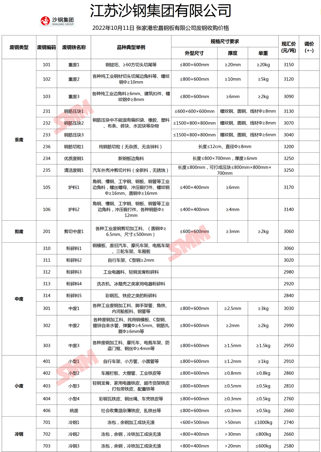 今日沙钢张家港基地 废钢收购报价已更新,有货的朋友欢迎联系我们!