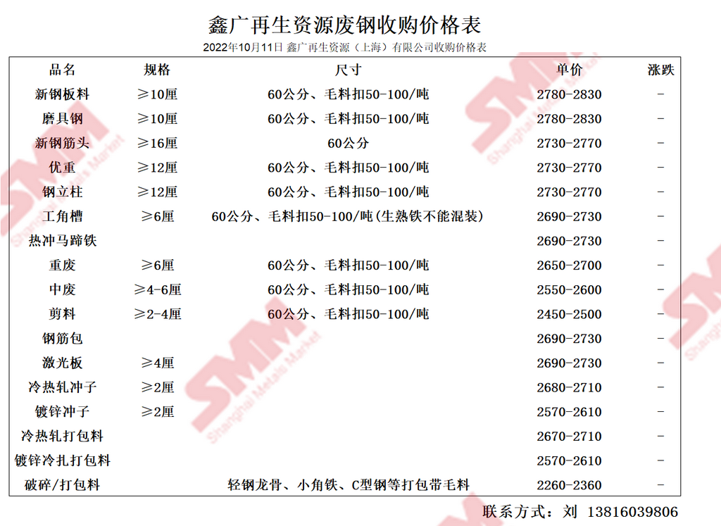 今日 鑫广再生资源(上海)有限公司 废钢收购报价已更新,有货的朋友欢迎联系我们!