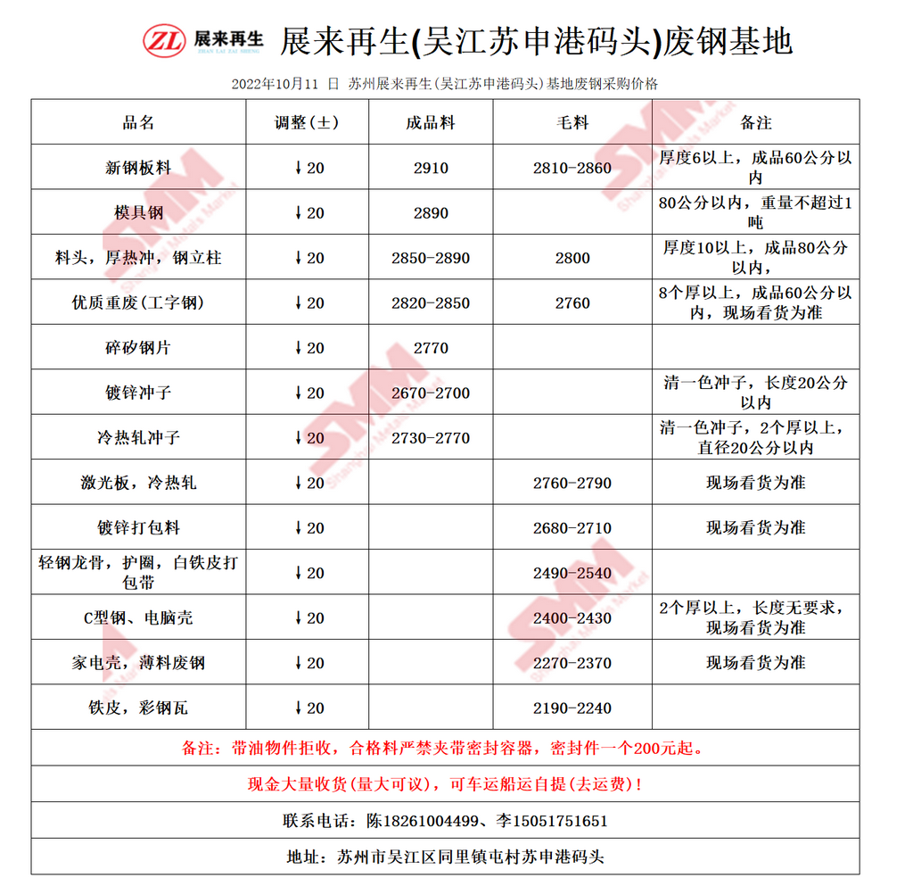 今日 苏州展来再生(吴江苏申港码头)基地 废钢采购报价已更新,有货的朋友欢迎联系我们!