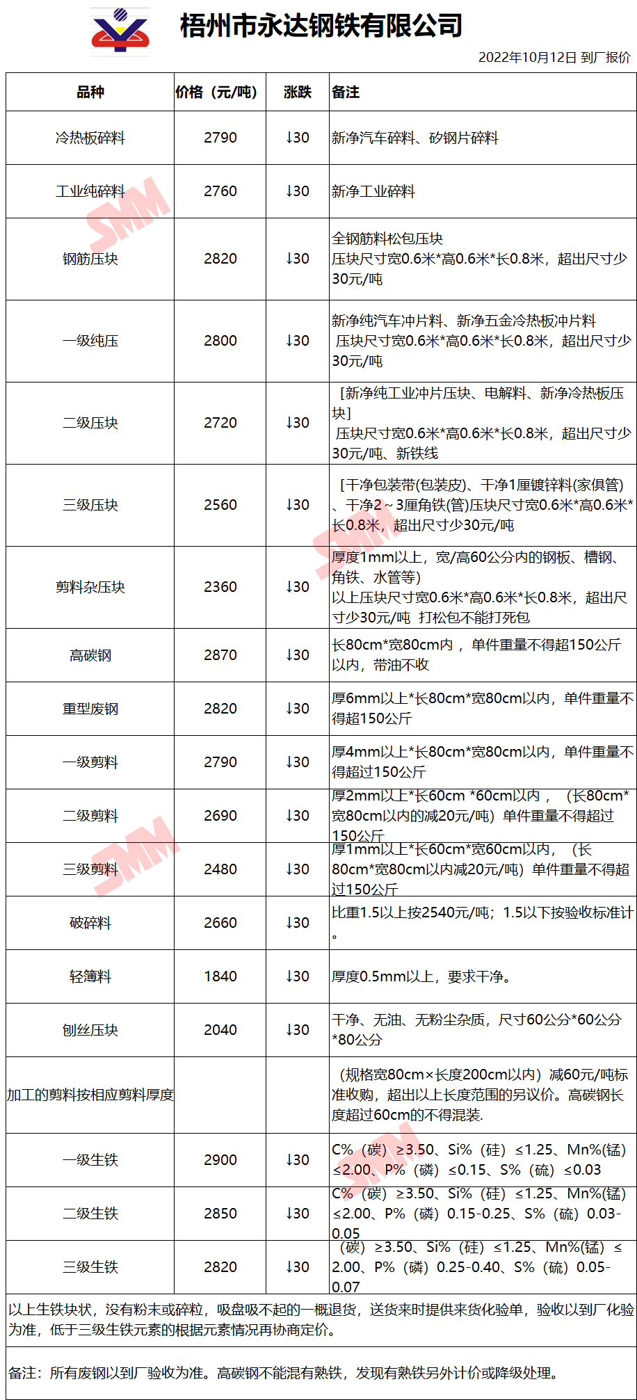 今日梧州永达钢铁 废钢收购报价已更新,有货的朋友欢迎联系我们!