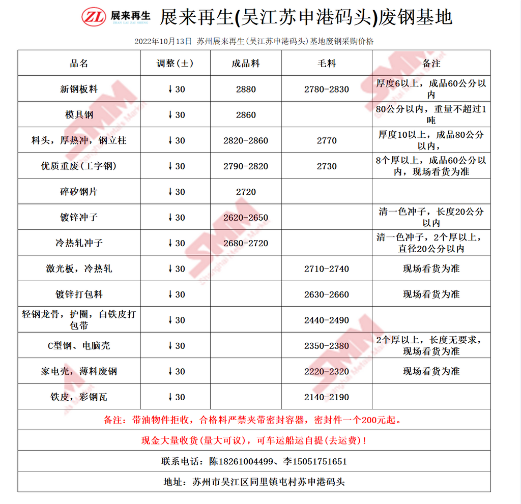 今日 苏州展来再生(吴江苏申港码头)基地 废钢采购报价已更新,有货的朋友欢迎联系我们!