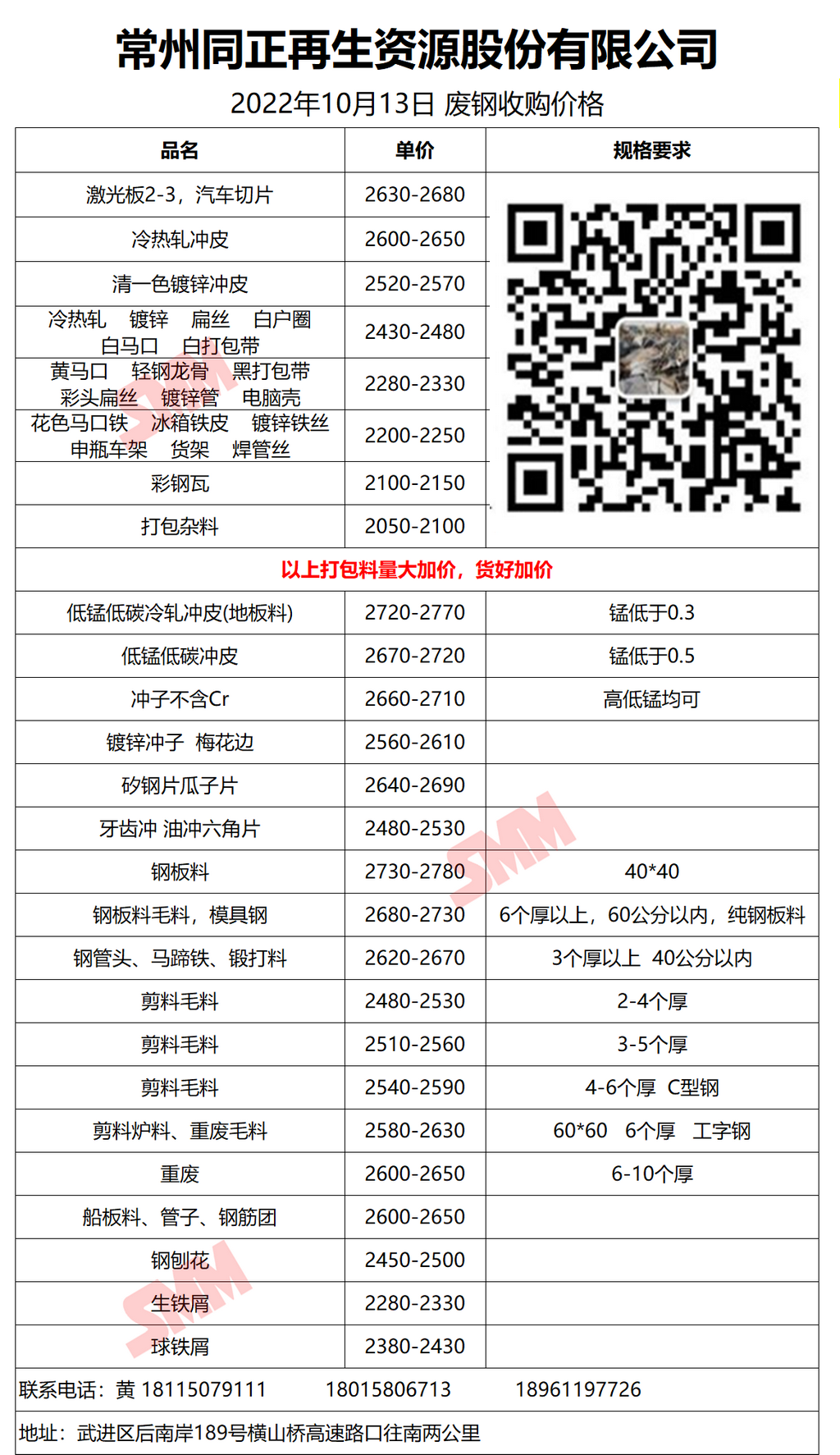 今日常州同正再生资源 废钢收购报价已更新,有货的朋友欢迎联系我们!