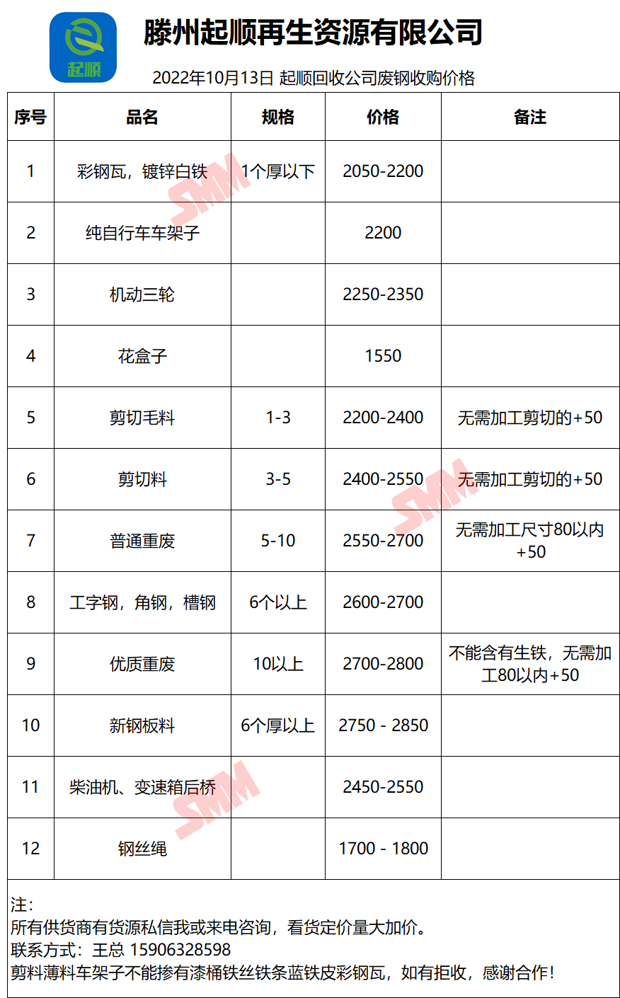 今日滕州起顺再生 废钢收购报价已更新,有货的朋友欢迎联系我们!