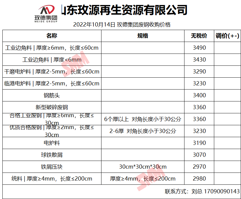 10月14日山东玫源再生 废钢收购报价