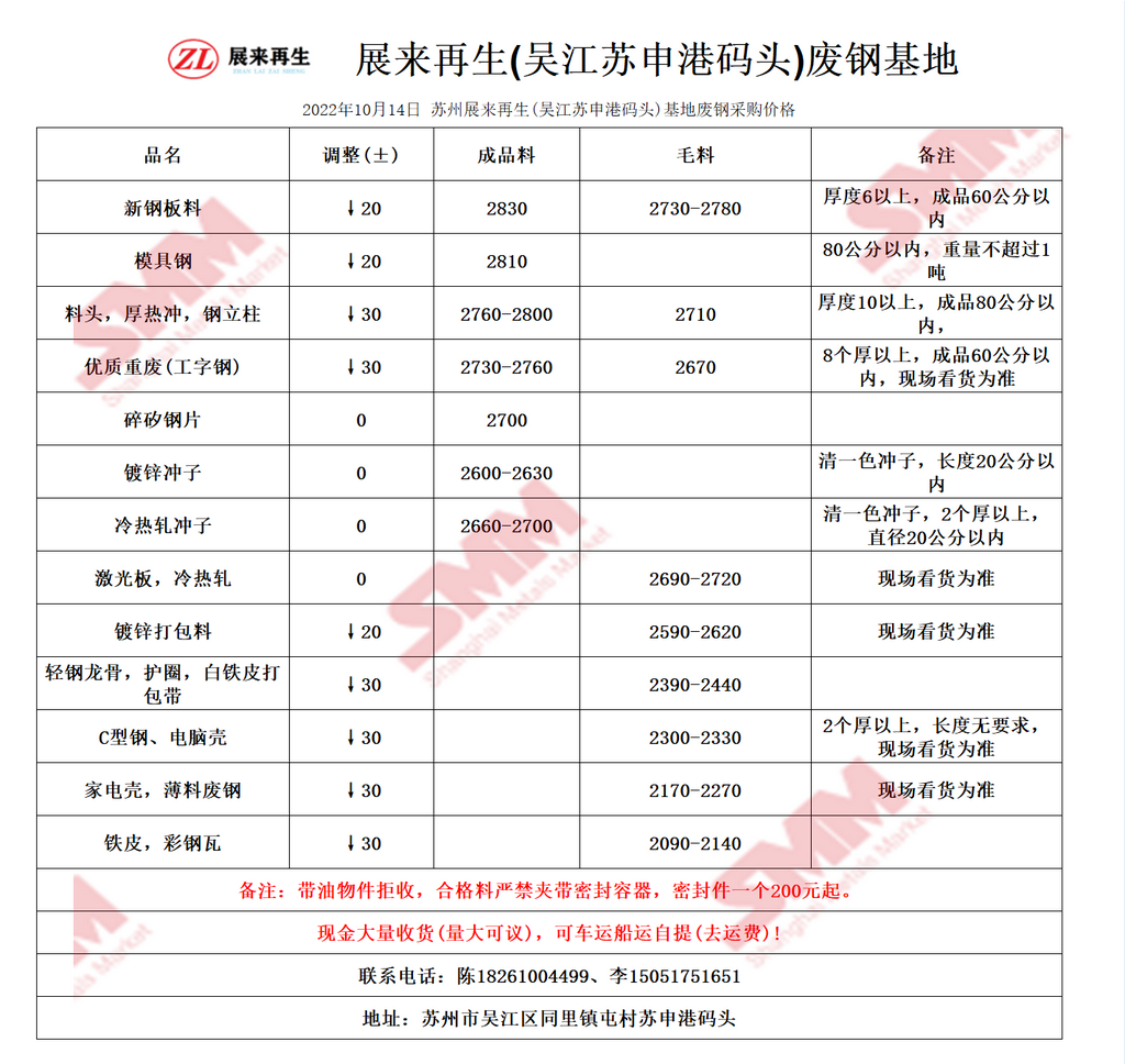 今日 苏州展来再生(吴江苏申港码头)基地 废钢采购报价已更新,有货的朋友欢迎联系我们!