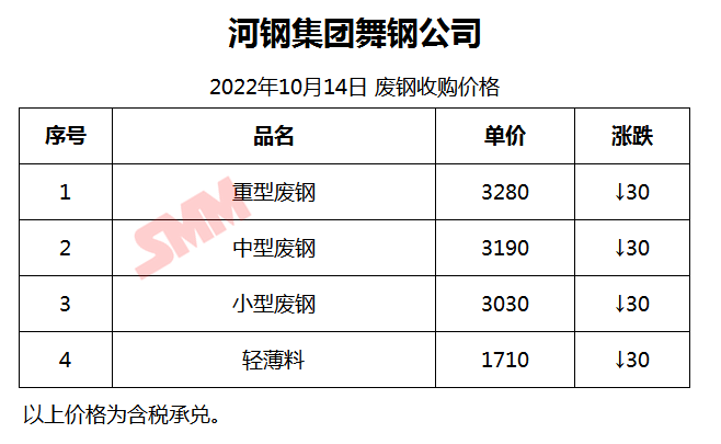 10月14日 河钢集团舞钢公司 废钢收购报价