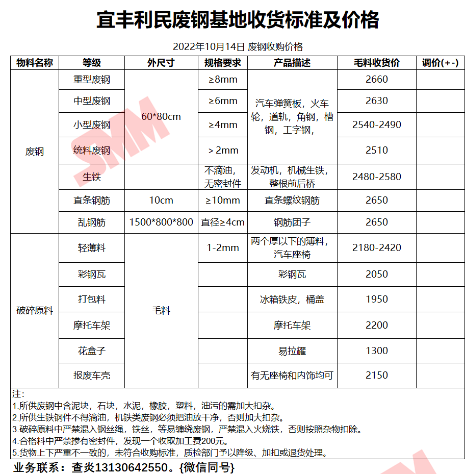 10月14日宜丰利民钢铁 废钢收购报价