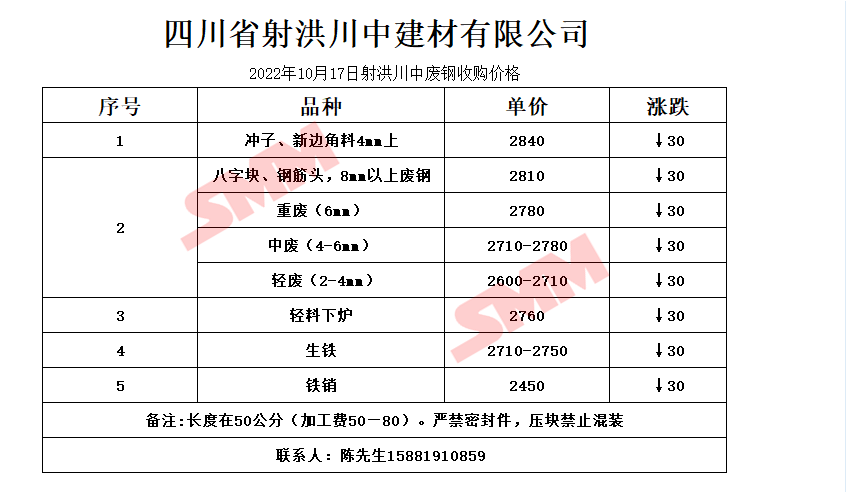 10月17日 四川射洪川中 废钢收购价格
