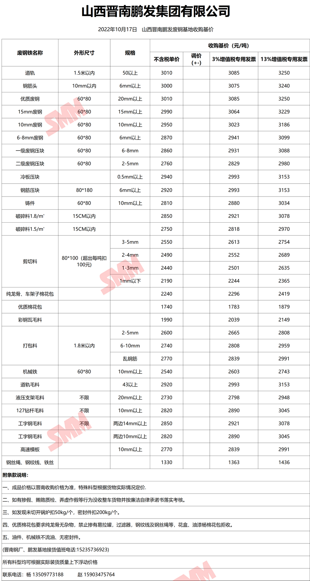 今日晋南鹏发 废钢收购报价已更新,有货的朋友欢迎联系我们!
