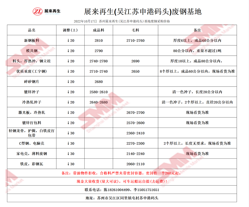 今日 苏州展来再生(吴江苏申港码头)基地 废钢采购报价已更新,有货的朋友欢迎联系我们!