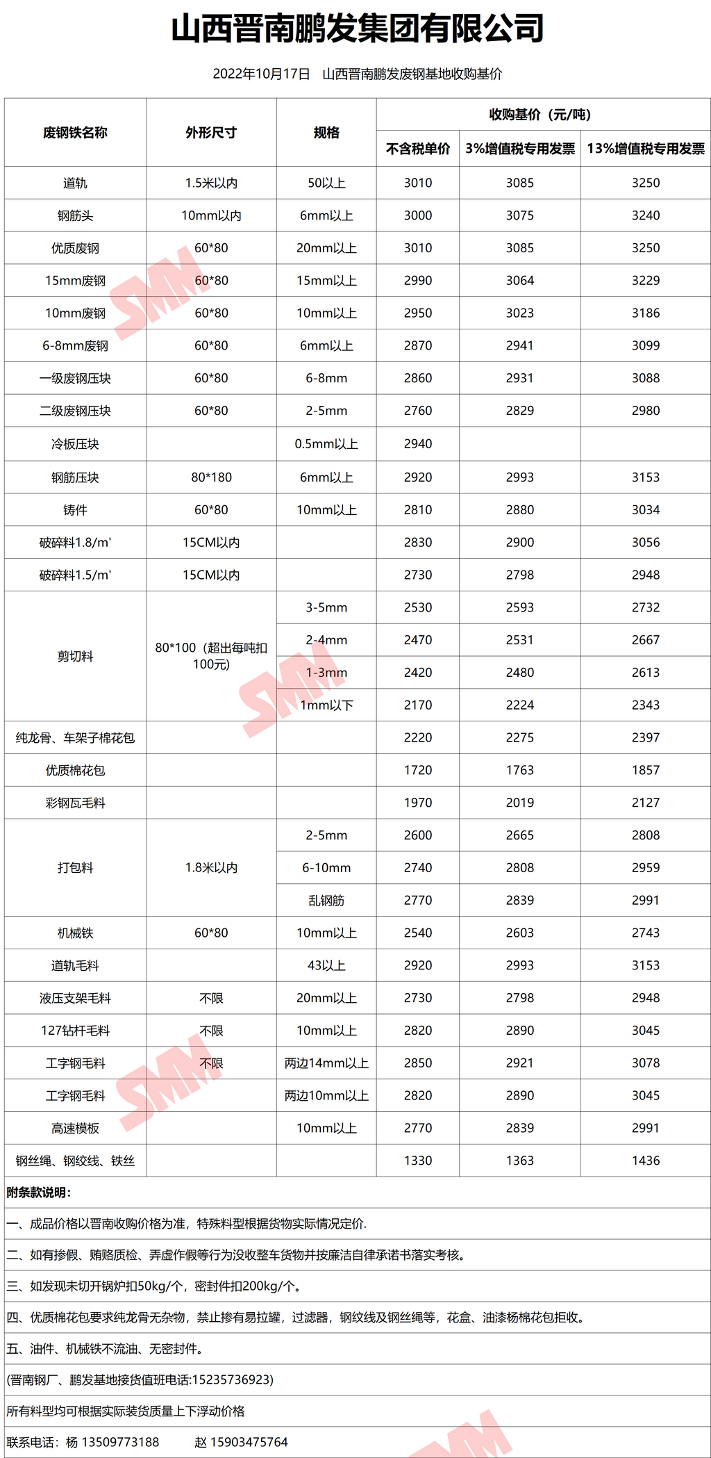 10月17日晋南鹏发 废钢收购二次报价