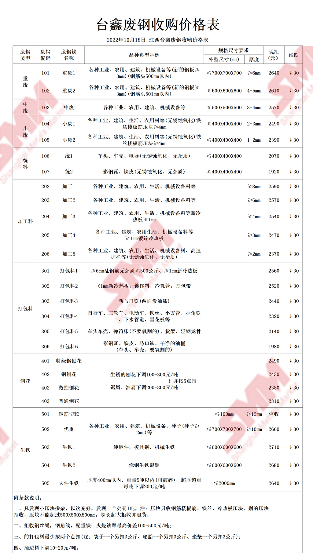 10月18日台鑫钢铁 废钢收购报价