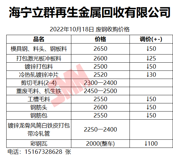 10月18日海宁立群再生金属 废钢收购报价